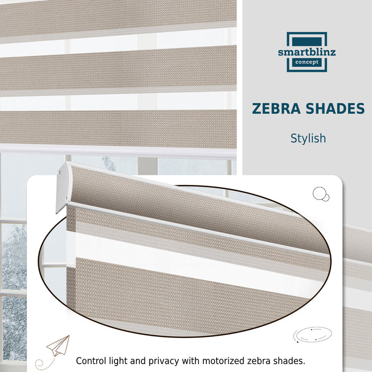 Zebra Shades, also known as dual shades, are renowned for their unique dual-layered stripe design that offers easy adjustment of light and privacy. Composed of alternating sheer and semi-opaque strips, they create an elegant and dynamic visual effect. Not only functional, Zebra Shades are a fashionable option that complements contemporary home decor.