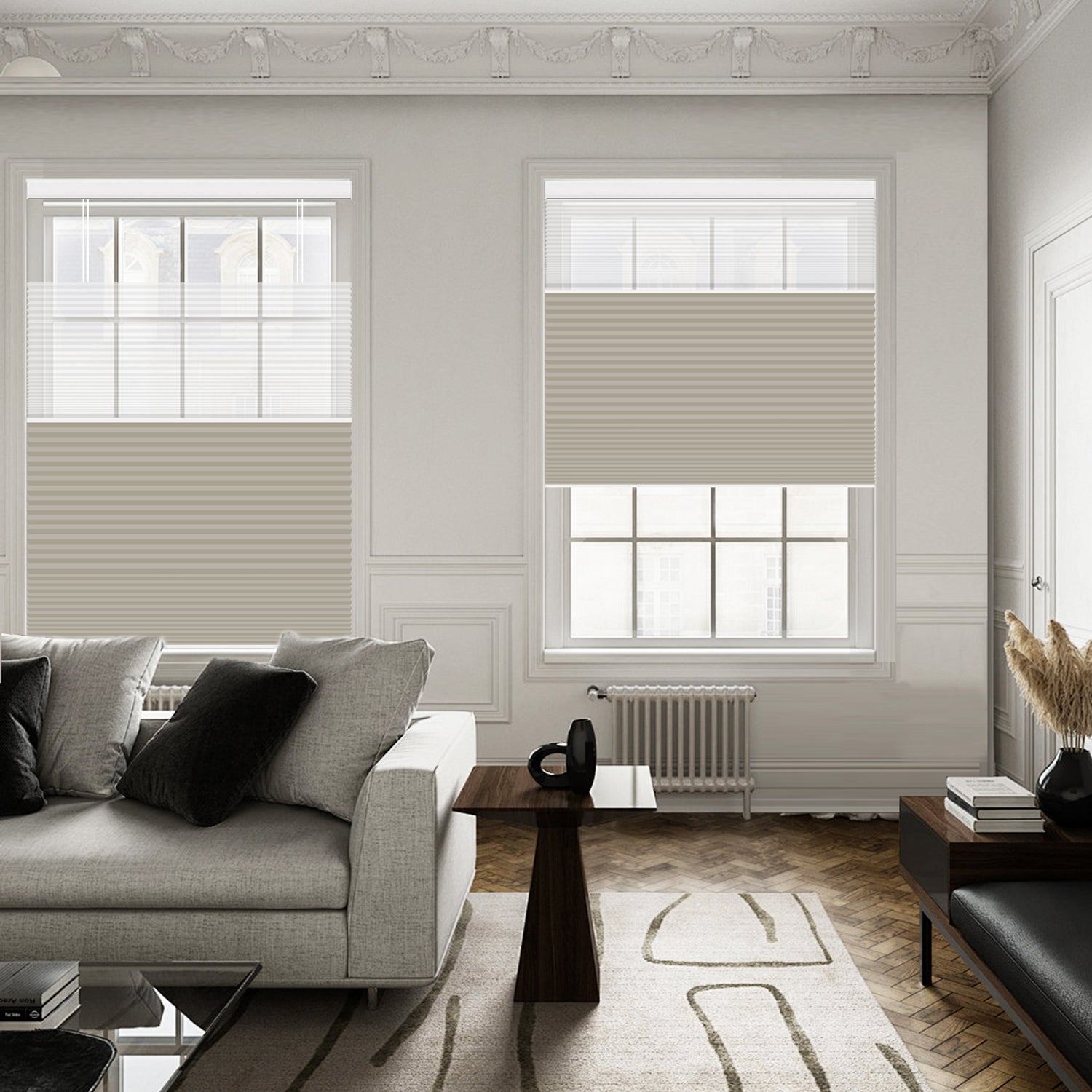 The SmartBlinzconcept motorized shades , especially the cellular shades, utilize a honeycomb structure to enhance energy efficiency. This unique design optimizes thermal insulation, helping to maintain a comfortable indoor climate by keeping spaces warmer in winter and cooler in summer. As a result, they significantly reduce the need for heating and cooling, leading to energy savings and contributing to environmental sustainability.